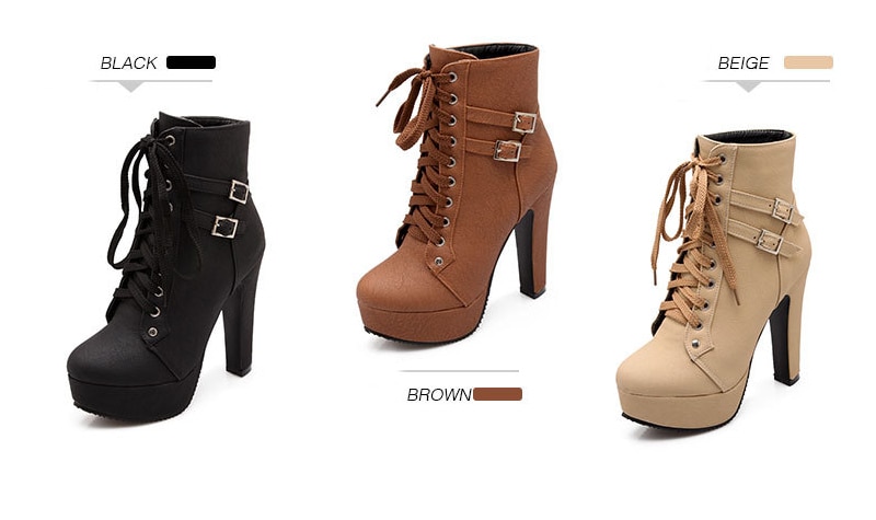 Ankle Boots Women Platform High Heels Lace Up Shoes Woldwide Shipping