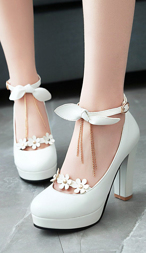 Gender: WomenItem Type: PumpsPump Type: Ankle StrapHeel Height: Super High (8cm-up)Heel Type: Square heelUpper Material: PUToe Shape: Round ToeOccasion: CasualClosure Type: Buckle StrapOutsole Material: RubberInsole Material: PUSeason: Spring/AutumnModel Number: X1666Style: Sweetis_handmade: YesWith Platforms: YesPlatform Height: 0-3cmLining Material: Genuine LeatherLining-Genuine Leather Type: PigskinFit: Fits true to size, take your normal sizeFashion Element: FlowerBrand Name: rimocyheel type: thick heeled/square heels/ high heelseason: spring/autumn/summeroccasion: party shoes/wedding pumps/punk boots/high heels botiesgender: women/woman/mujer/female/lady/ladies/femmecolor: white/pink/blackshoes type: high heel shoes/white princess pumpsshoes item: solid black pumps/cute girls dress shoesheel height: heels 10.5cm/platform 2.5cmsize: 31/32/33/34/35/36/37/38/39/40/41/42/43/44top shape: round toe