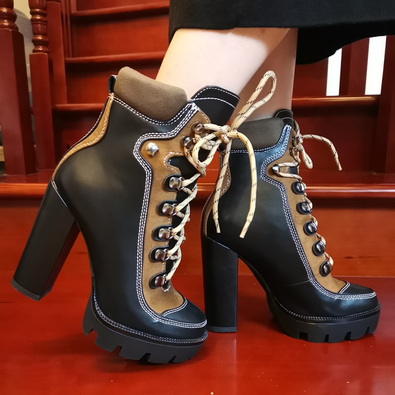 Brand Name: PerixirUpper Material: MicrofiberBoot Height: AnkleFit: Fits true to size, take your normal sizeToe Shape: Round ToeSeason: Spring/AutumnClosure Type: Lace-Upis_handmade: YesPattern Type: Mixed ColorsItem Type: BootsHeel Type: Square heelBoot Type: BasicInsole Material: PUShaft Material: MicrofiberOutsole Material: RubberFashion Element: RomeLining Material: MicrofiberHeel Height: Super High (8cm-up)Model Number: LSBOO19019With Platforms: YesPlatform Height: 3-5cmDepartment Name: Adultheight heel: 12cm
