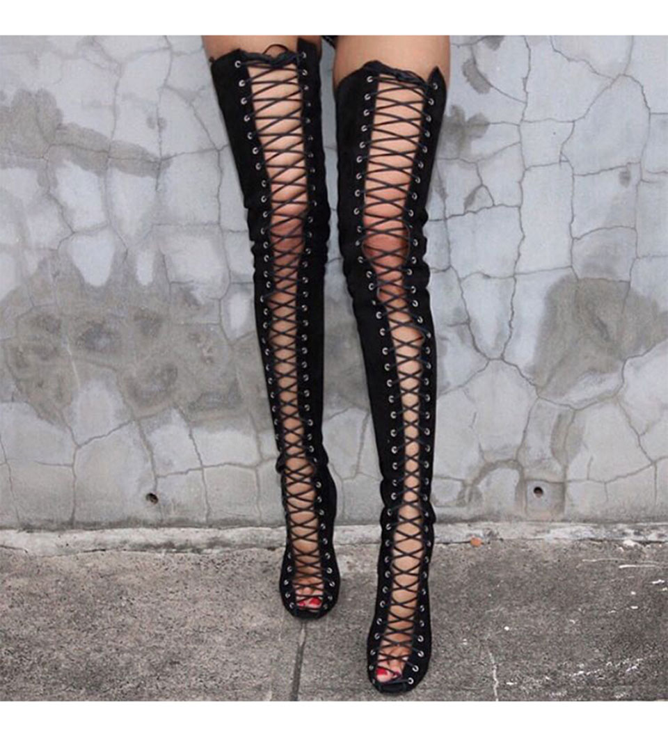 Cross Tied Women Heels High Knee Worldwide Shipping