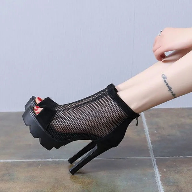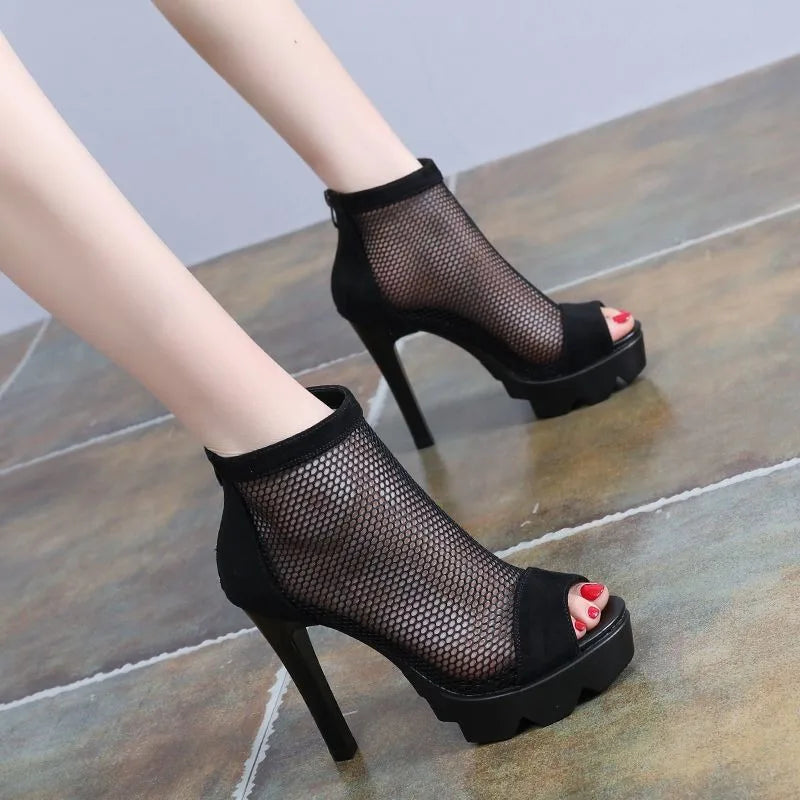 Women's Shoes Fashion High Heels Cool Boots Hollow Out Mesh Boots Sexy Fish Mouth High Heeled Sandals for Women Gladiator Boots