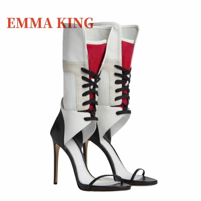 Sexy Patchwork Ankle Boots Pointed Toe Lace-Up High Heel Pumps Women Multi Color Gladiator Sandals Sexy Nightclub Women's Shoes