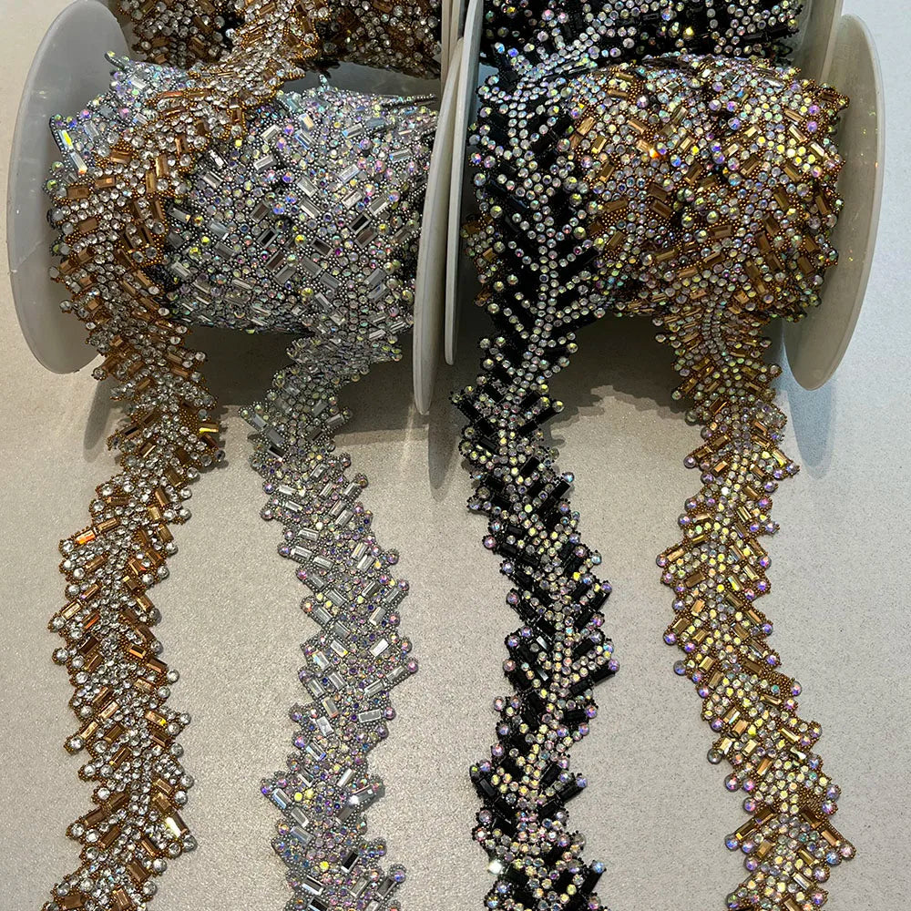 1 Yard DIY Iron on rhinestone chain for women belet appliques cloths hot fix crystal wedding party dress patches